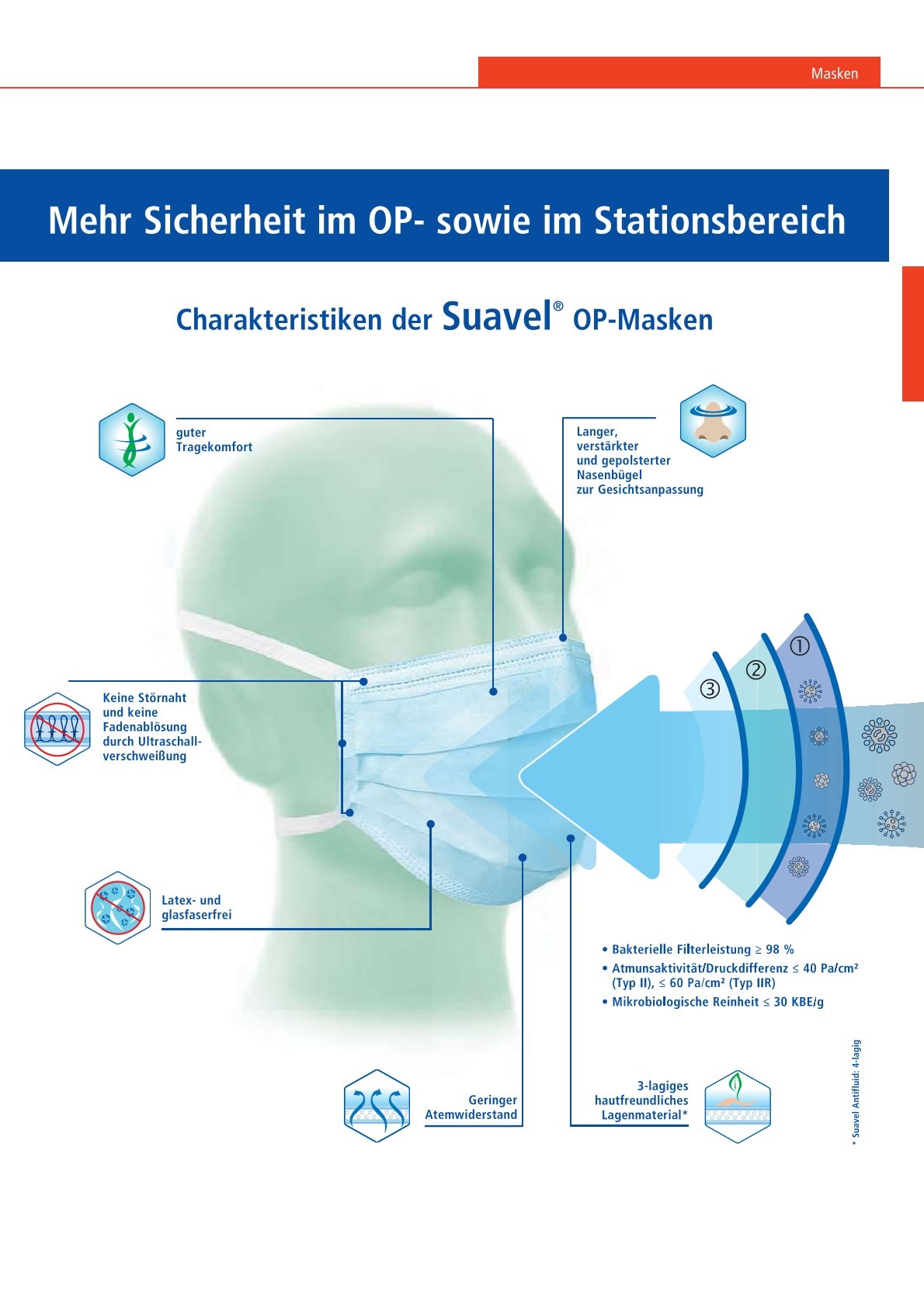 Suavel Protec OP-Maske mit elastischen Ohrschlaufen, Type IIR, blau