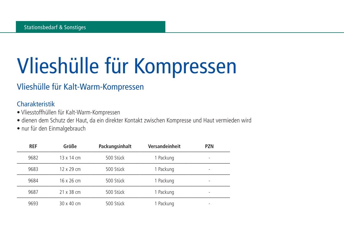 Vlieshülle für Kompresse, 12 x 29 cm für Kalt-/Warmkompresse, 12 x 29 cm